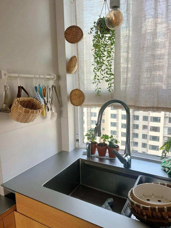 比如定制橱柜时留一块开放格,安装上3个网篮抽,方便收纳一些不适合放冰箱的水果蔬菜,而成本只需要100多块。