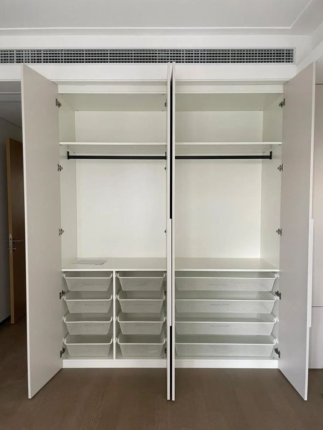 再比如定制衣柜时,所有的抽屉都用网篮代替,平均算下来一个只需要70块左右,并且用起来和定制抽屉根本没区别。